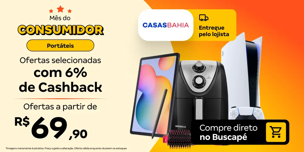 Já com o Cashback Buscapé, você recebe uma parte do valor da compra de volta. E tem ainda mais vantagens se tiver uma Conta Digital do Banco PAN, como o resgate automático que faz o cashback cair diretamente na conta. Aproveite a parceria Buscapé + PAN para expandir suas possibilidades financeiras. Encontre o menor preço e economize de verdade com todas as nossas ferramentas!