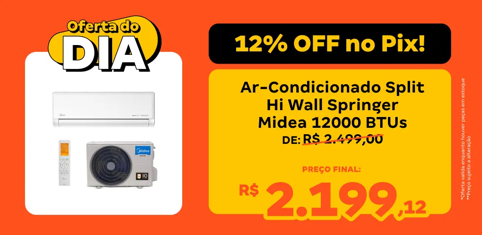 Se o que você tá procurando é um ar-condicionado, a gente traz opções de todos os tamanhos, como o ar-condicionado 12.000 BTUs, ideal para refrescar ambientes com eficiência e economia.