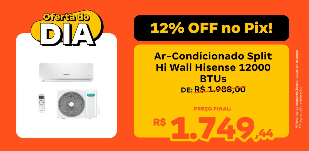 Se o que você tá procurando é um ar-condicionado, a gente traz opções de todos os tamanhos, como o ar-condicionado 12.000 BTUs, ideal para refrescar ambientes com eficiência e economia.
