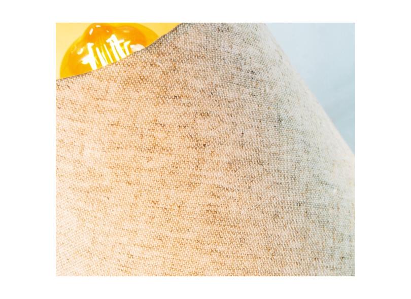 Kit 2 Abajur Sala Quarto Bivolt Gota Madeira Caramelo Cúpula De Tecido Bege 34cm