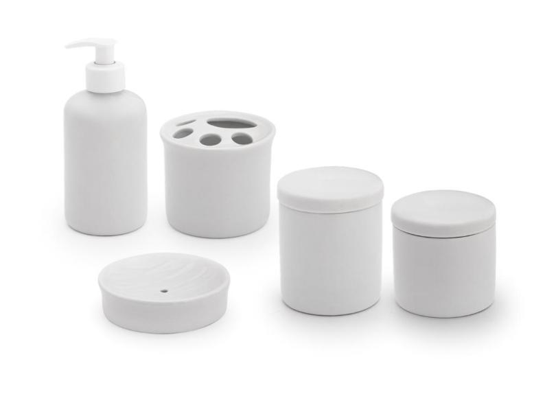 Kit Banheiro 2 Potes 2 Saboneteiras 1 Porta Escova Porcelana