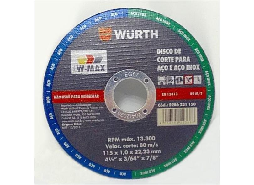 Disco Corte Para Aço E Aço Inox 115 X 1,0 X 22,23 Mm Wurth