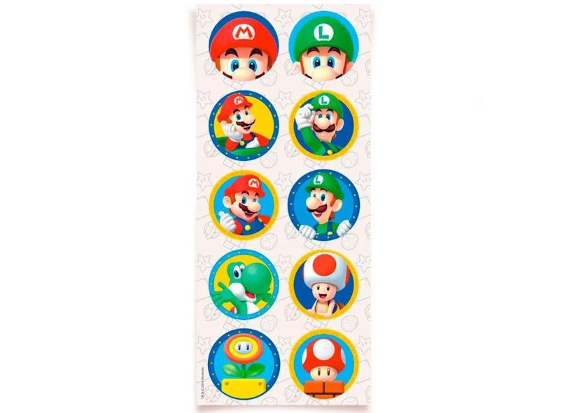 Lembrancinha Adesivos Redondo Super Mario Bros 03 cartelas - Cromus