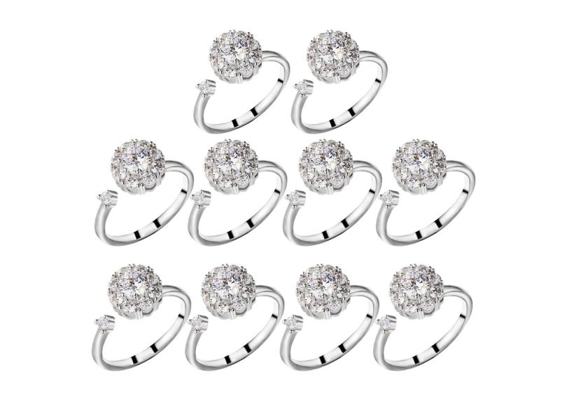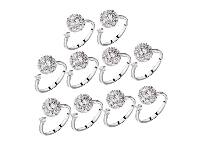 10pcs Anel Giratório Ajustável Anel De Zircão Aberto Girando Aliviando Os Anéis De Tédio