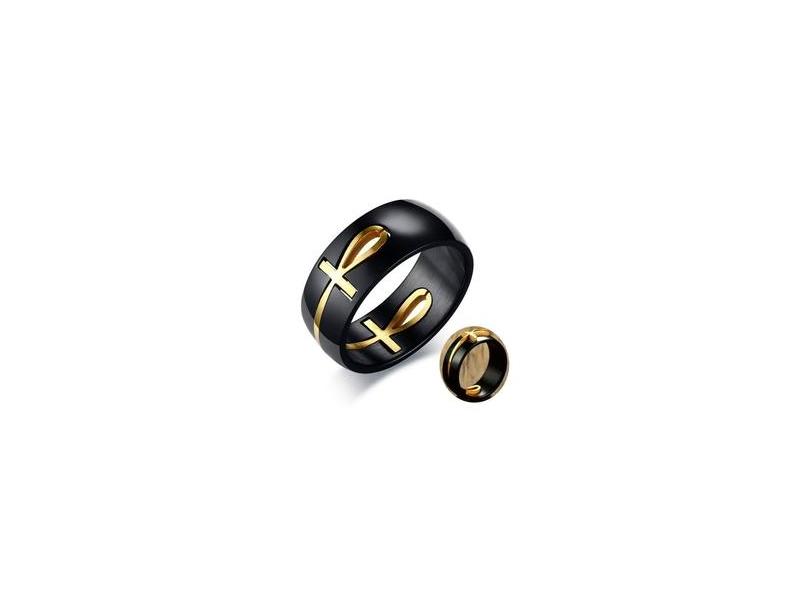 Anel Aço Inox Cruz Ankh Egípcio Removível Banhado A Ouro 18k