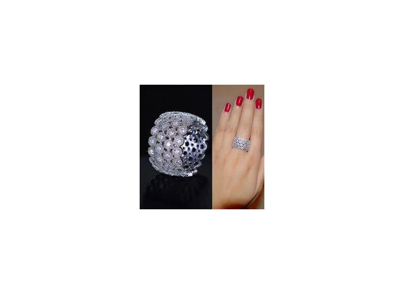 Anel Banhado A Ouro Branco Com Micro Zirconias