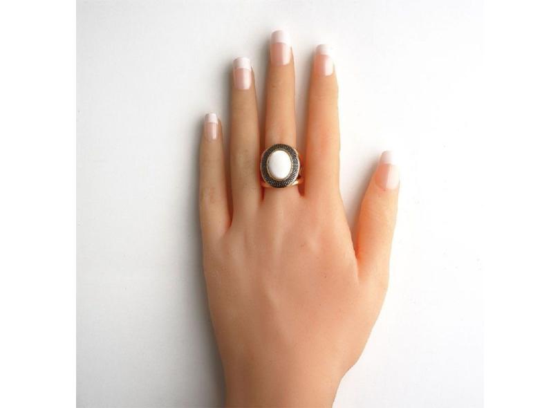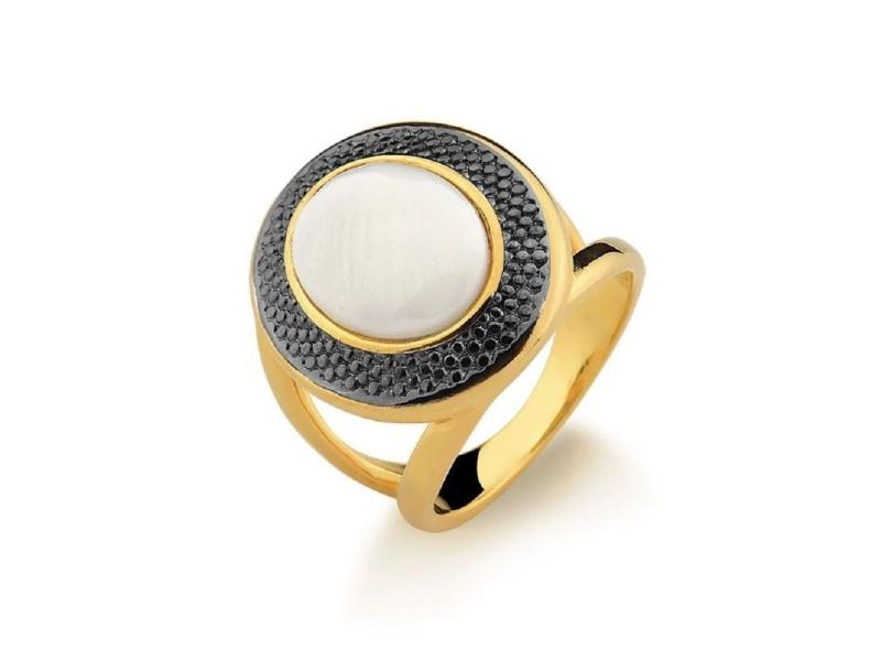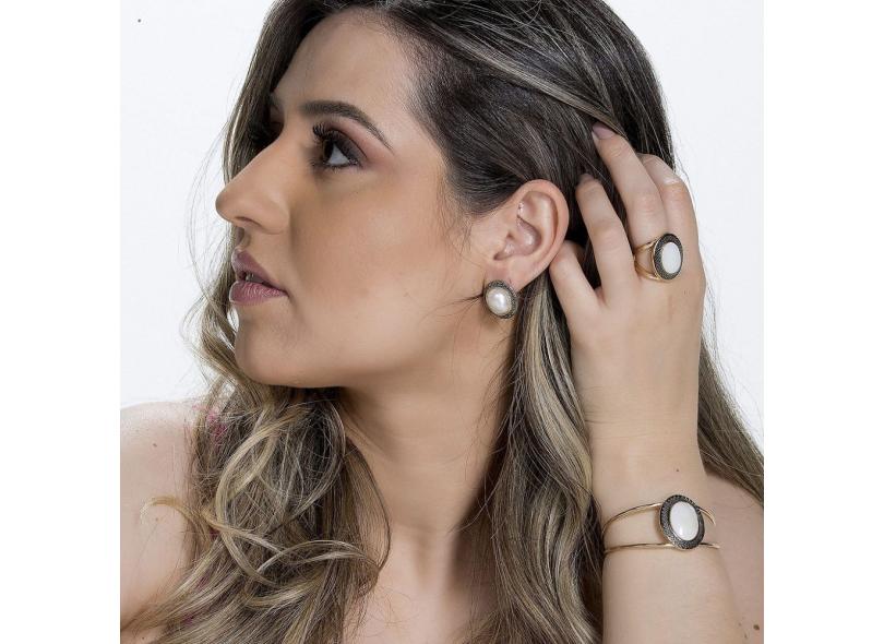 Anel banho ouro 18k madrepérola aplique ródio negro