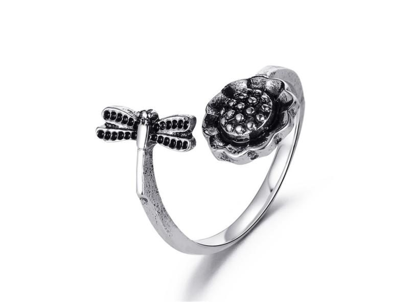 Anel de dedo indicador feminino aberto retro anel de girassol feminino anel de flor de sentido antigo