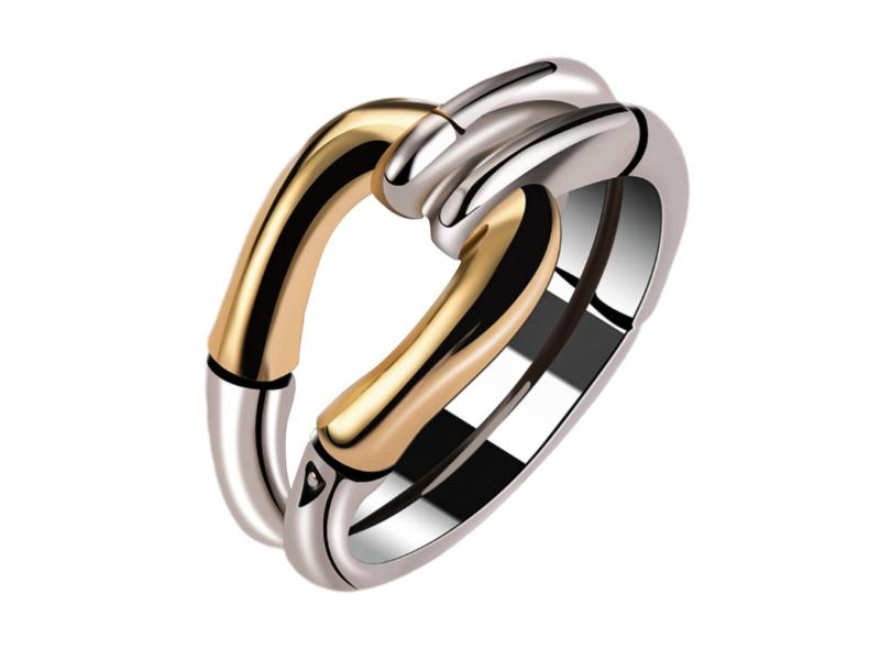 Anel de dois tons banhado a ouro 18K estilo B Ins europeu e americano