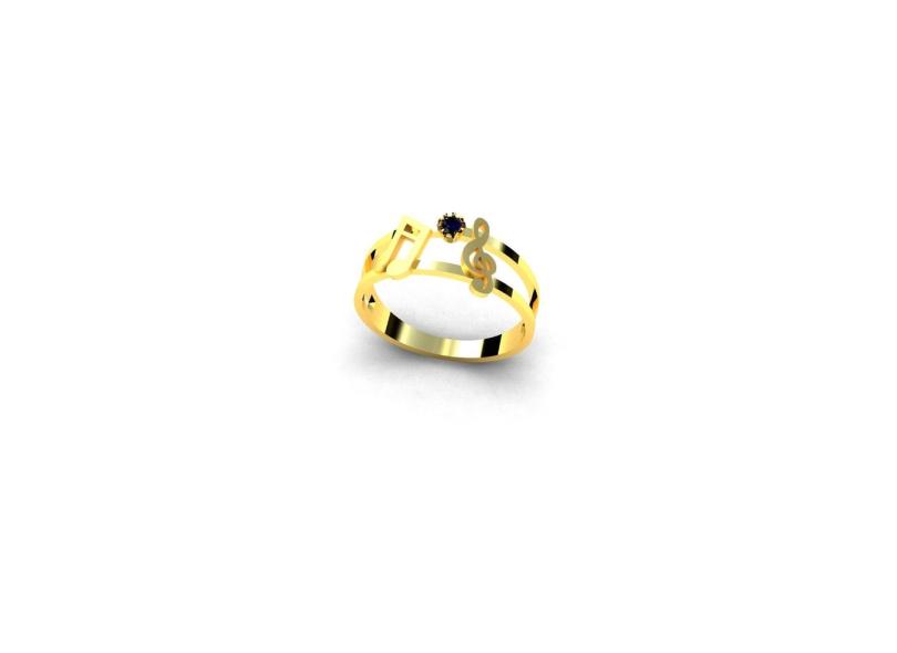 Anel de Formatura Música em ouro 18k e Pedras Naturais