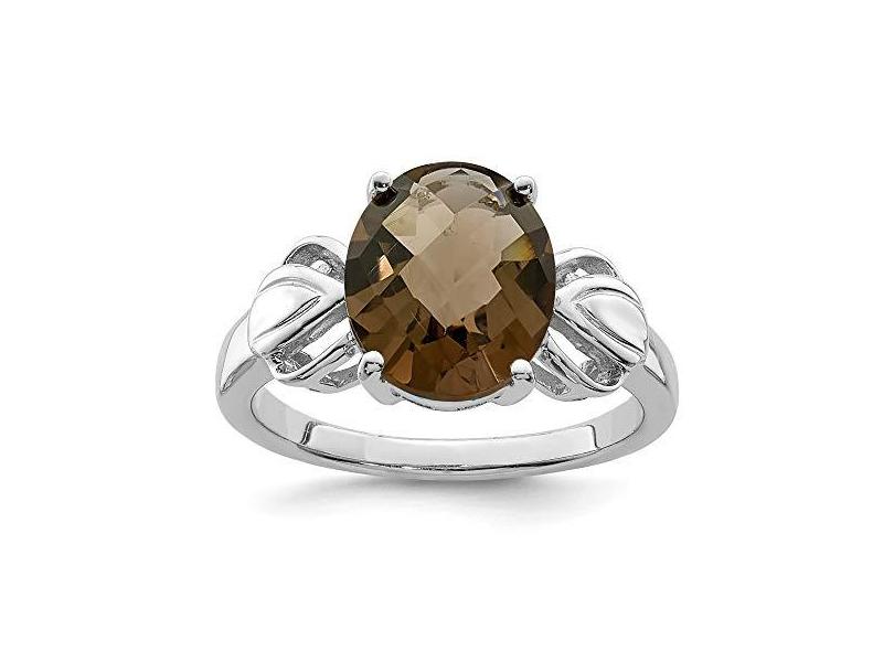 Anel de quartzo esfumaçado de prata esterlina 925 folheado a ródio
