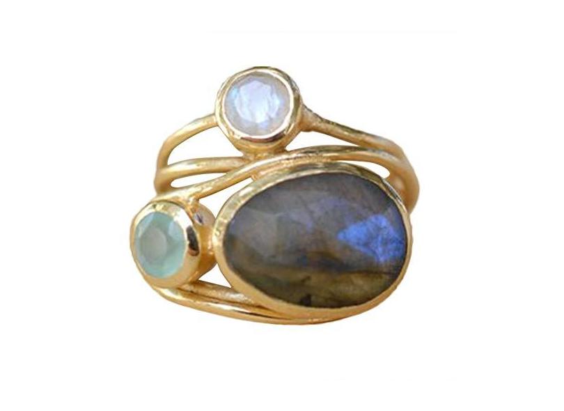 Anel feminino super1798 vintage irregular multicamadas artificial pedra da lua joia presente Dourado