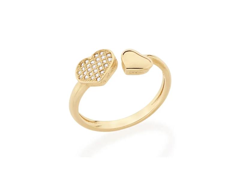 Anel Folheado A Ouro Aro Aberto Com Corações Liso E Com Zircônias - 512174