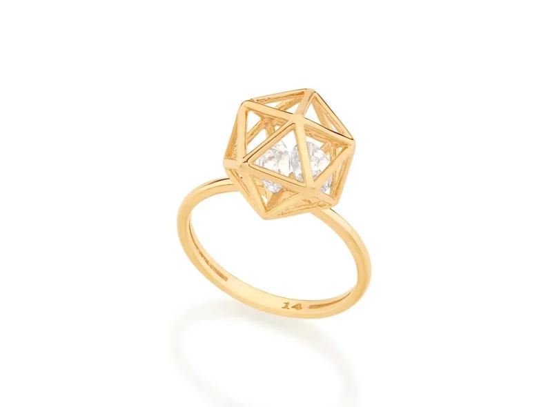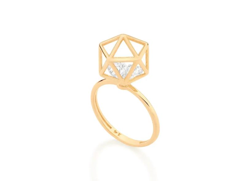 Anel Icosaedro Folheado A Ouro Com Zircônias - 512904