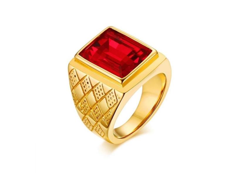 Anel Masculino Homem Banhado Ouro 18K Granada Tamanho 24