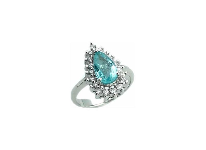 Anel Turmalina Paraíba Azul Gota E Diamantes Ouro Branco 18K