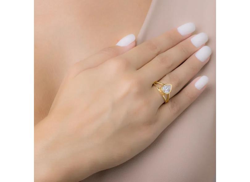 Anel Vazado Com Zircônia Cristal Gota Banhado Em Ouro 18K
