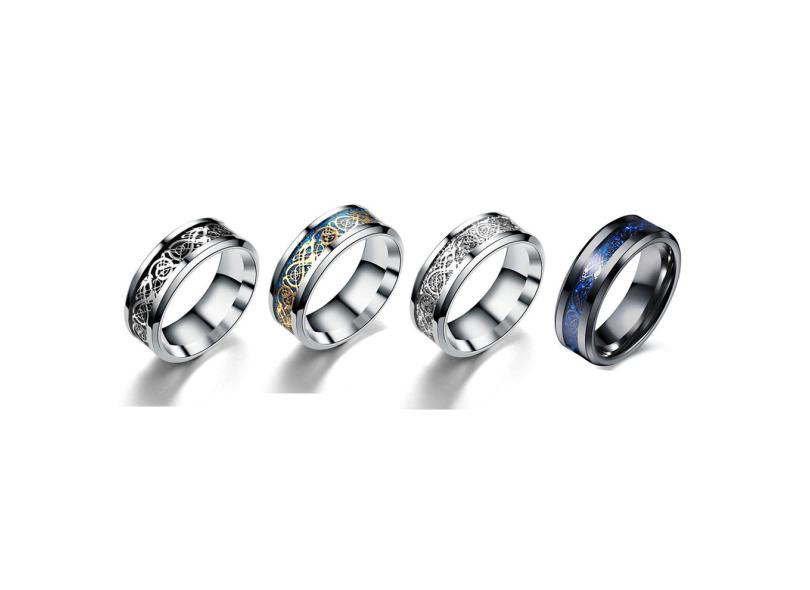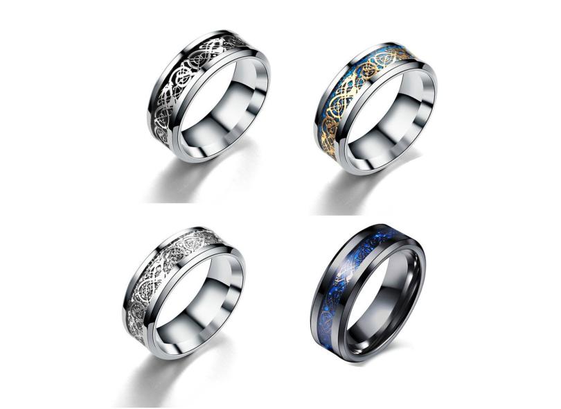 Tatuagem de dragão de aço inoxidável vintage anel masculino prata masculino
