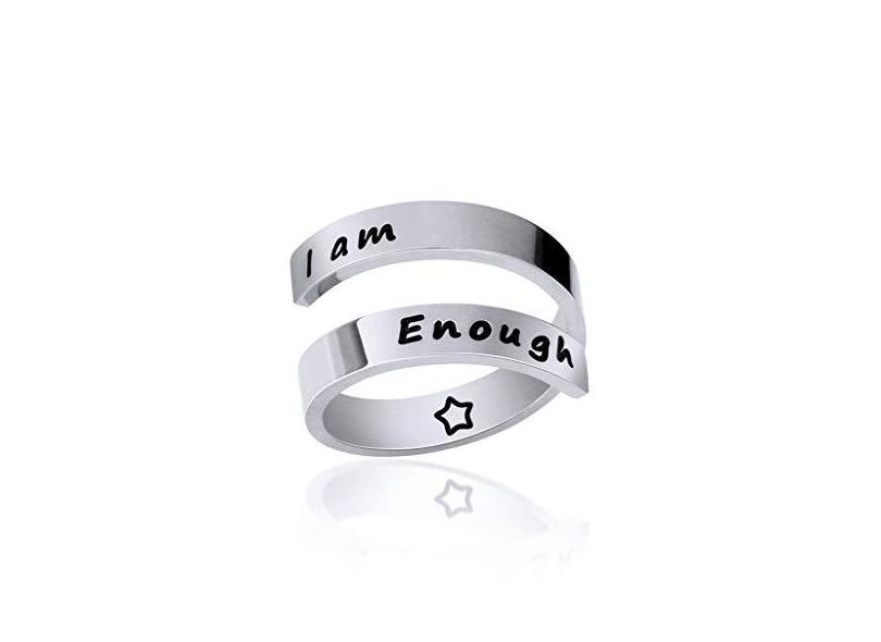 Xueebaoy Anel de aço inoxidável inspirado em anéis giratórios ajustáveis I Am Enough
