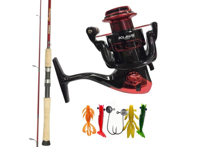 Kit Pescaria Molinete Klaus 3000 Com Vara Shimano 14lbs e Iscas Anzol