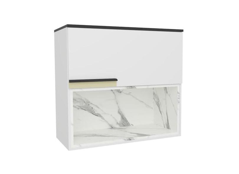Armário Aéreo 80cm 1 Porta Basculante 1 Nicho Cozinha Flórida Branco Ártico/Calacatta