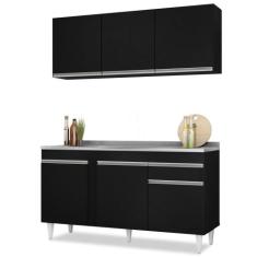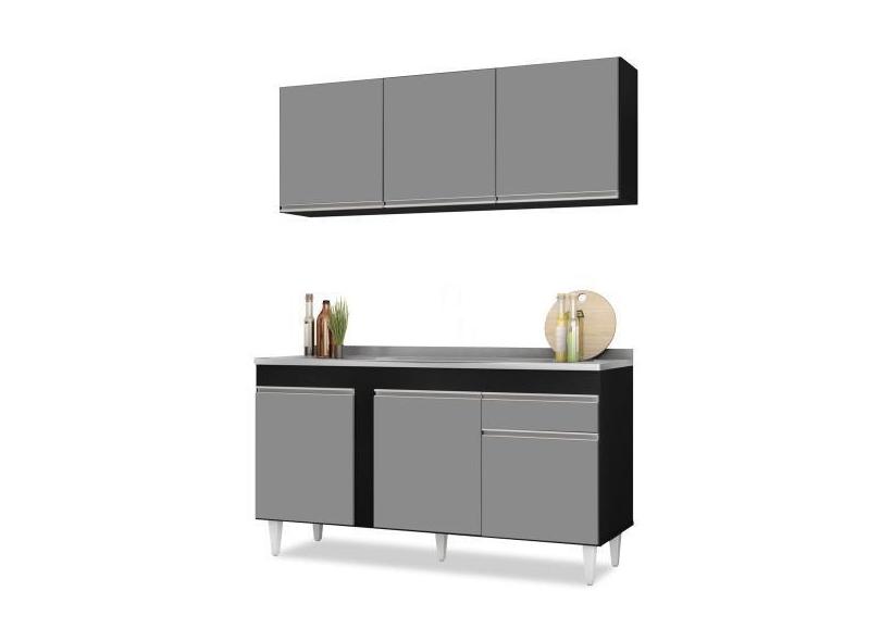 Armário Aéreo Argélia E Balcão Gabinete Com Pia Inox 150cm Dakota Pret