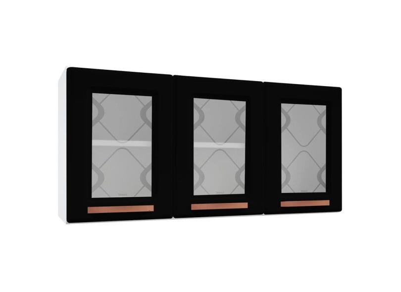 Armário Aéreo Cozinha Aço Mirage New 3 Portas com Vidro Branco/Preto - Telasul