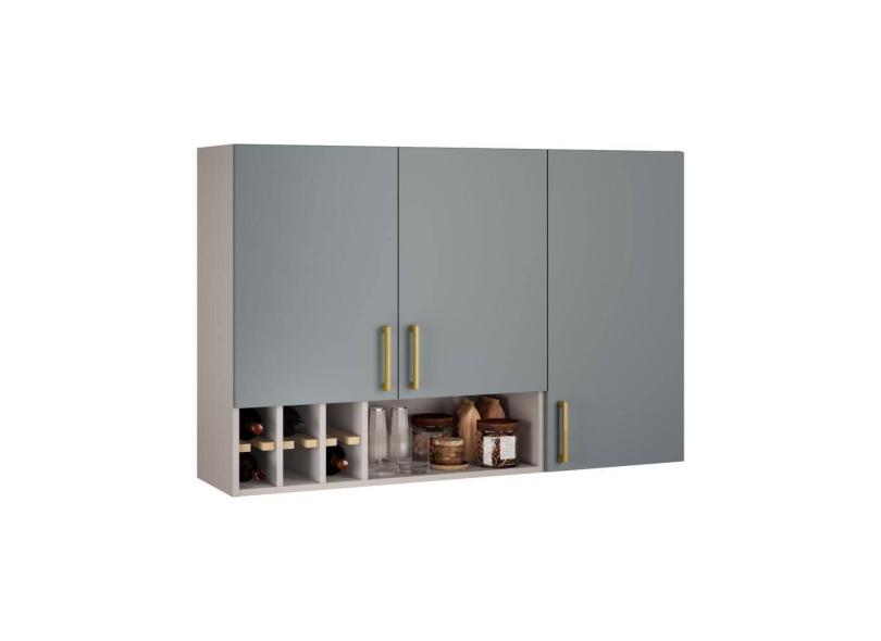 Armário Aéreo de Cozinha Fendi e Gris 3 Portas e Nicho Essence