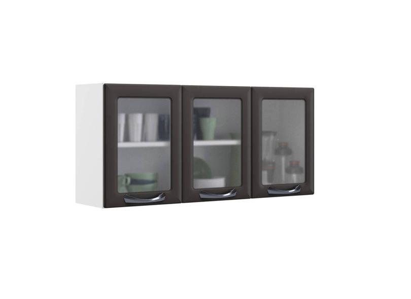 O menor preço encontrado no Brasil para Armário Aéreo de Cozinha Grafite 3 Portas com Vidro New Premium atualmente é R$ 549,99.