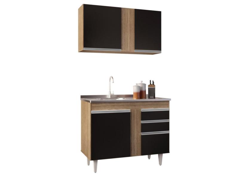 Armário Aéreo Indiana E Balcão Gabinete 100cm Com Pia Inox Luziania Castanho/Preto - Lumil