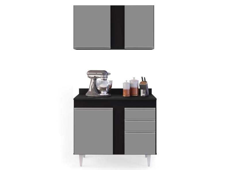 Armário Aéreo Indiana e Balcão Gabinete 100cm Luziania Preto/Cinza - Lumil