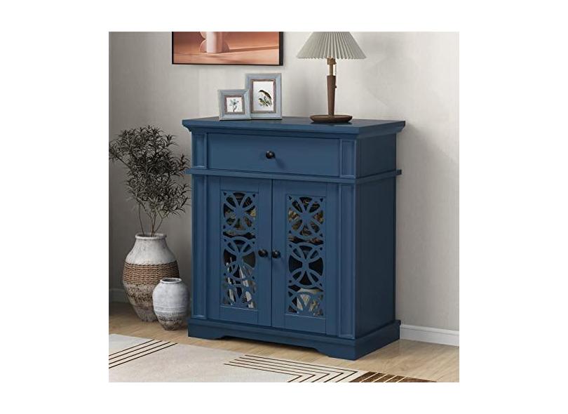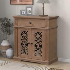 Armário de armazenamento moderno, buffet com detalhes de madeira, mesa de sofá, mesa com 2 portas decorativas, 1 gaveta grande e 1 prateleira para cozinha, escritório, quarto, corredor, entrada, sala