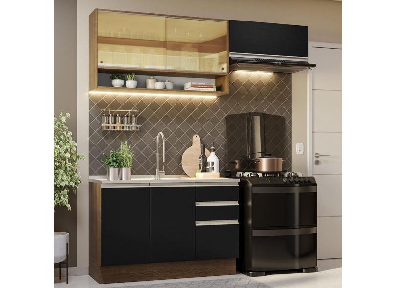Armário De Cozinha 200Cm Rustic/Preto Glamy 08 Rustic/Preto