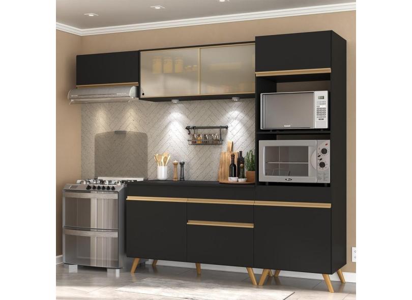 Armário De Cozinha 252cm Com Leds Multimóveis Preto/dourado