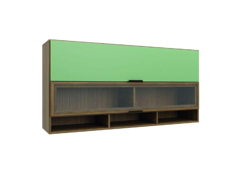 Armário De Cozinha Aéreo 2 Portas Com Vidro Módulo Suspenso Nogal/Verde Batrol