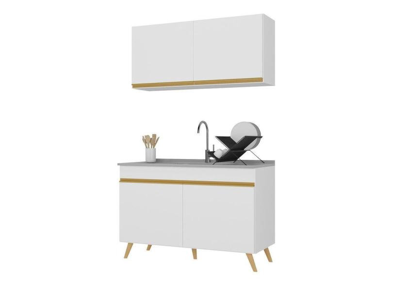 Armário De Cozinha Compacta 120cm V3748 Branco Dourado
