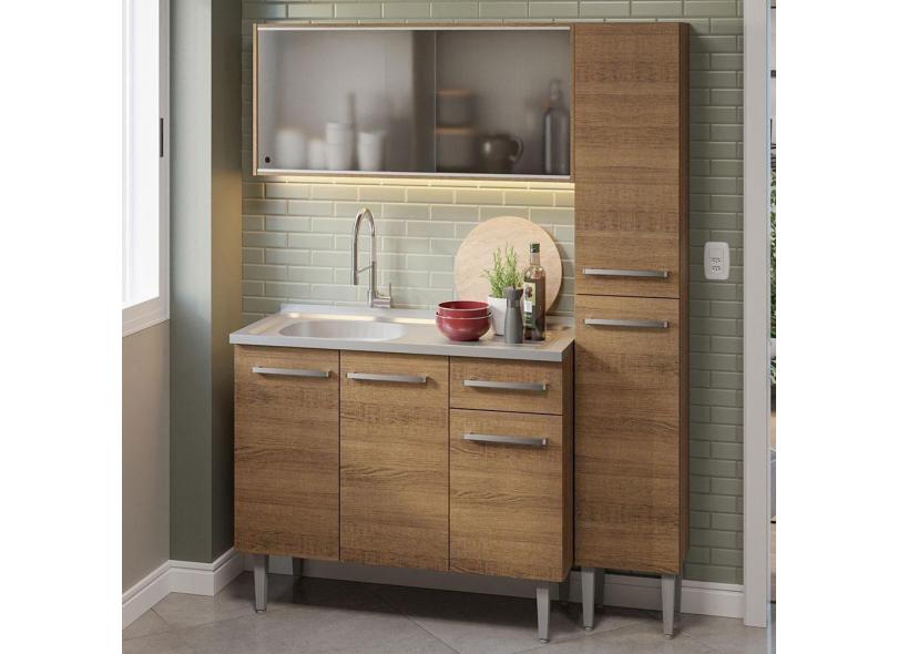 Armário De Cozinha Compacta 137cm Com Pia Rustic Emilly Madesa 07 Rustic