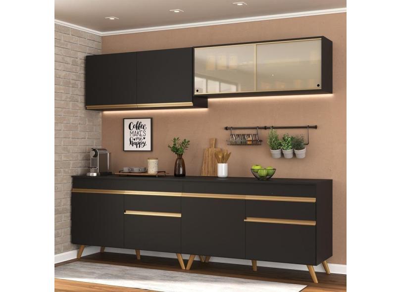 Armário De Cozinha Compacta 240cm Multimóveis Preto/dourado