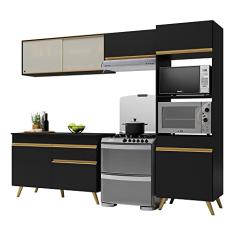Armário de Cozinha Compacta 252cm Veneza Multimóveis V3692 Preto/dourado