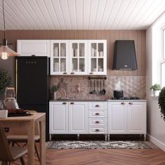 Armário de Cozinha Compacta 4 Peças com Vidro e Tampo Cooktop Agatha L