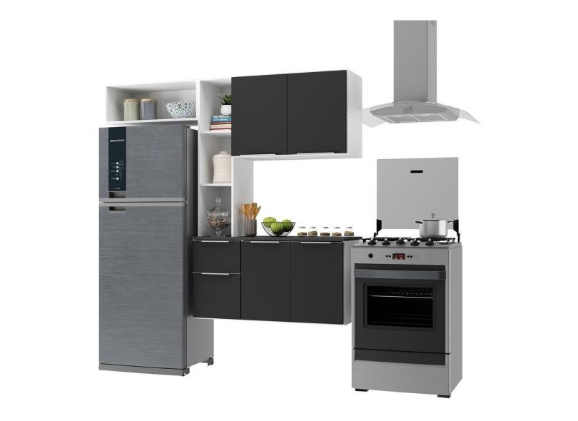 Armário De Cozinha Compacta Com Balcão Sofia Multimóveis V2006 Branco/Preto Branco/Preto