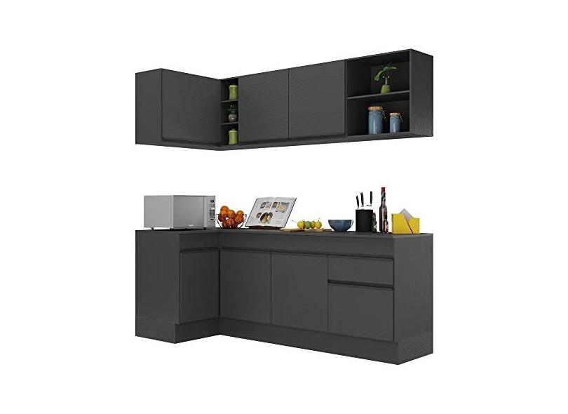 Armário de Cozinha Compacta de Canto com Rodapé Veneza Multimóveis V2093 Preto