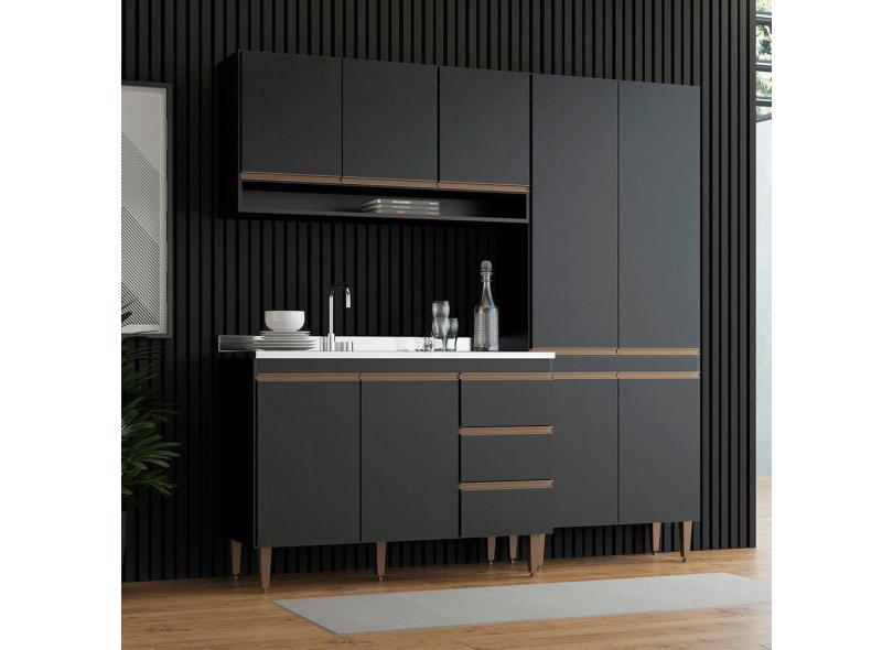 O menor preço encontrado no Brasil para Armário de Cozinha Compacta Modulada com Balcão Pia Sabrina 200x202 Cm 3 Peças MDP Preto MENU atualmente é R$ 1.881,00.