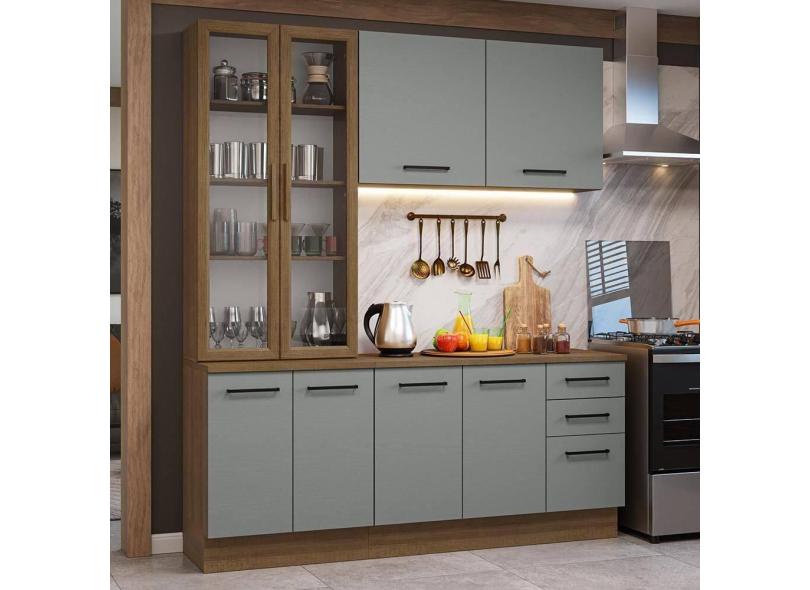 Armário De Cozinha Completa 190cm Com Cristaleira Agata Madesa Rustic Cinza