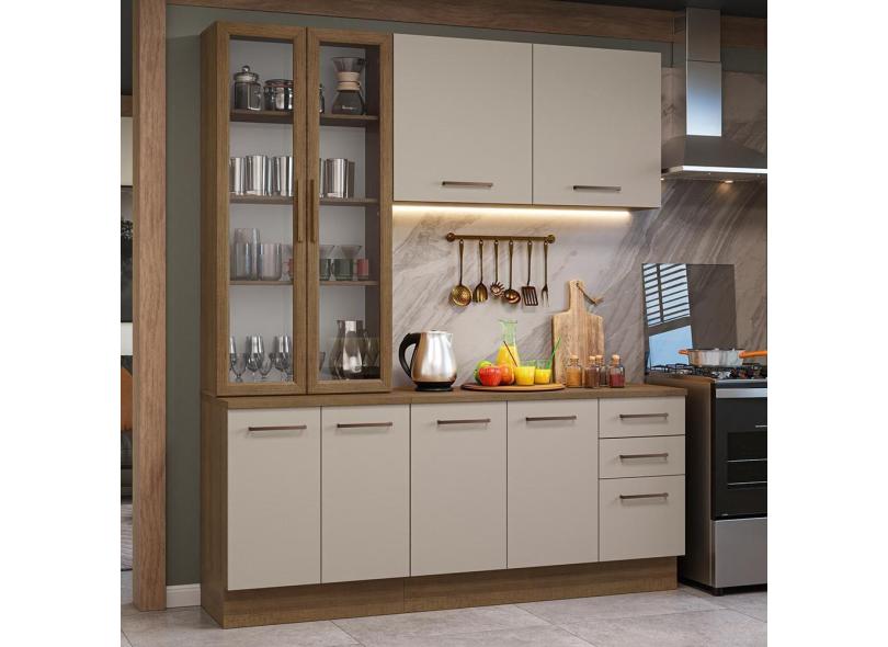 Armário De Cozinha Completa 190cm Com Cristaleira Agata Madesa Rustic Crema