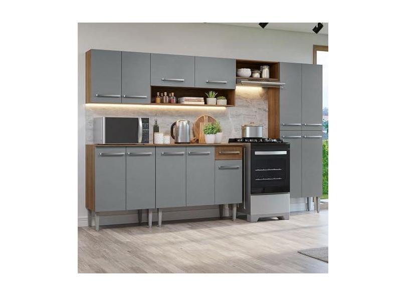 O menor preço encontrado no Brasil para Armário de Cozinha Completa 293cm Rustic/cinza Emilly Madesa 10 atualmente é R$ 937,38.