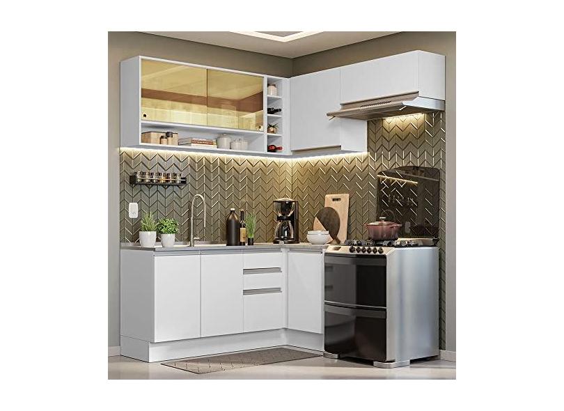 O menor preço encontrado no Brasil para Armário de Cozinha Completa de Canto 349cm Branco Glamy Madesa 06 atualmente é R$ 1.931,99.