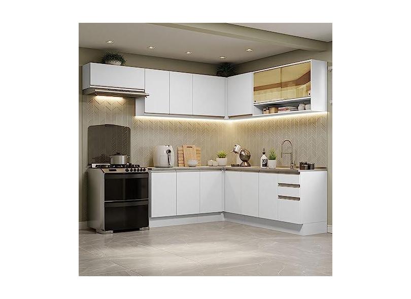 O menor preço encontrado no Brasil para Armário de Cozinha Completa de Canto 469cm Branco Glamy Madesa 01 atualmente é R$ 3.023,99.