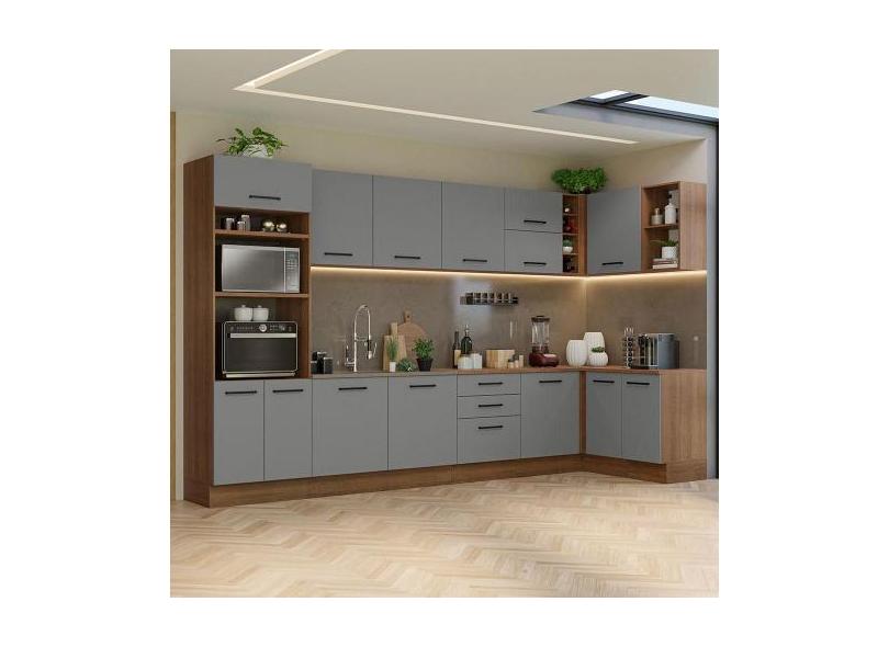 Armário De Cozinha Completa De Canto 499cm Rustic/Cinza Agata Madesa 0