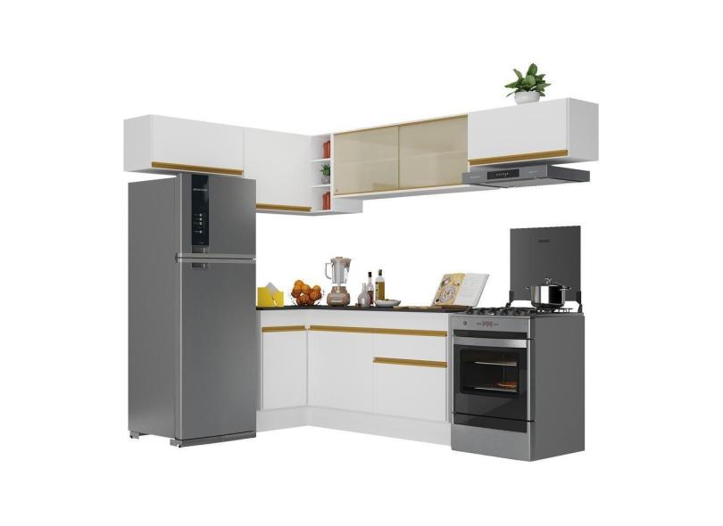 Armário De Cozinha Completa De Canto V2095 Branco Dourado